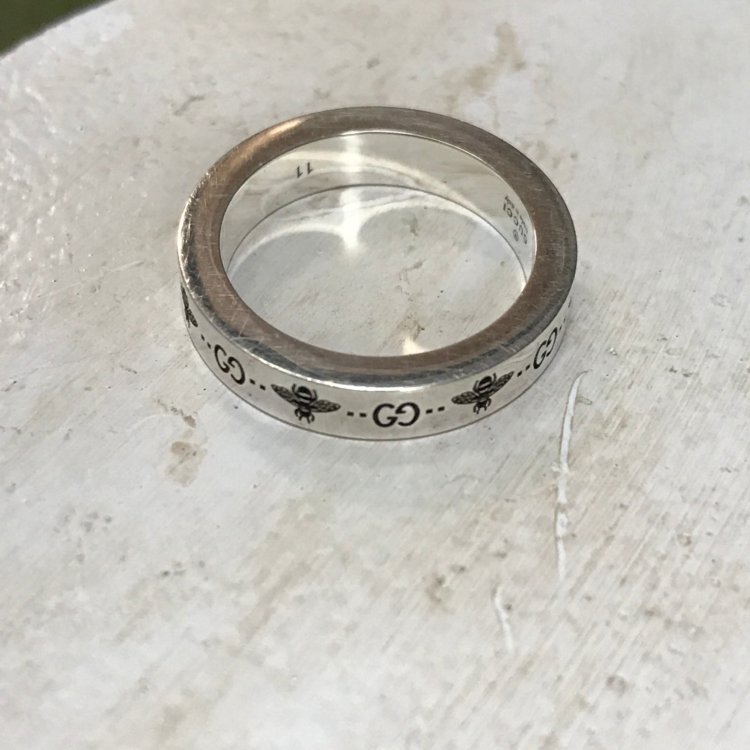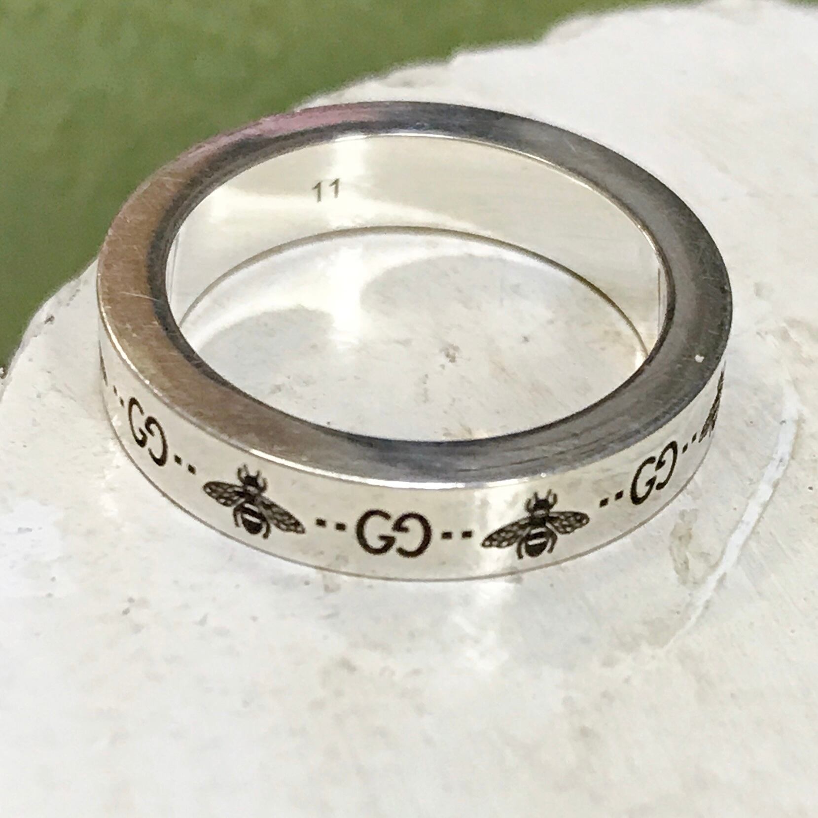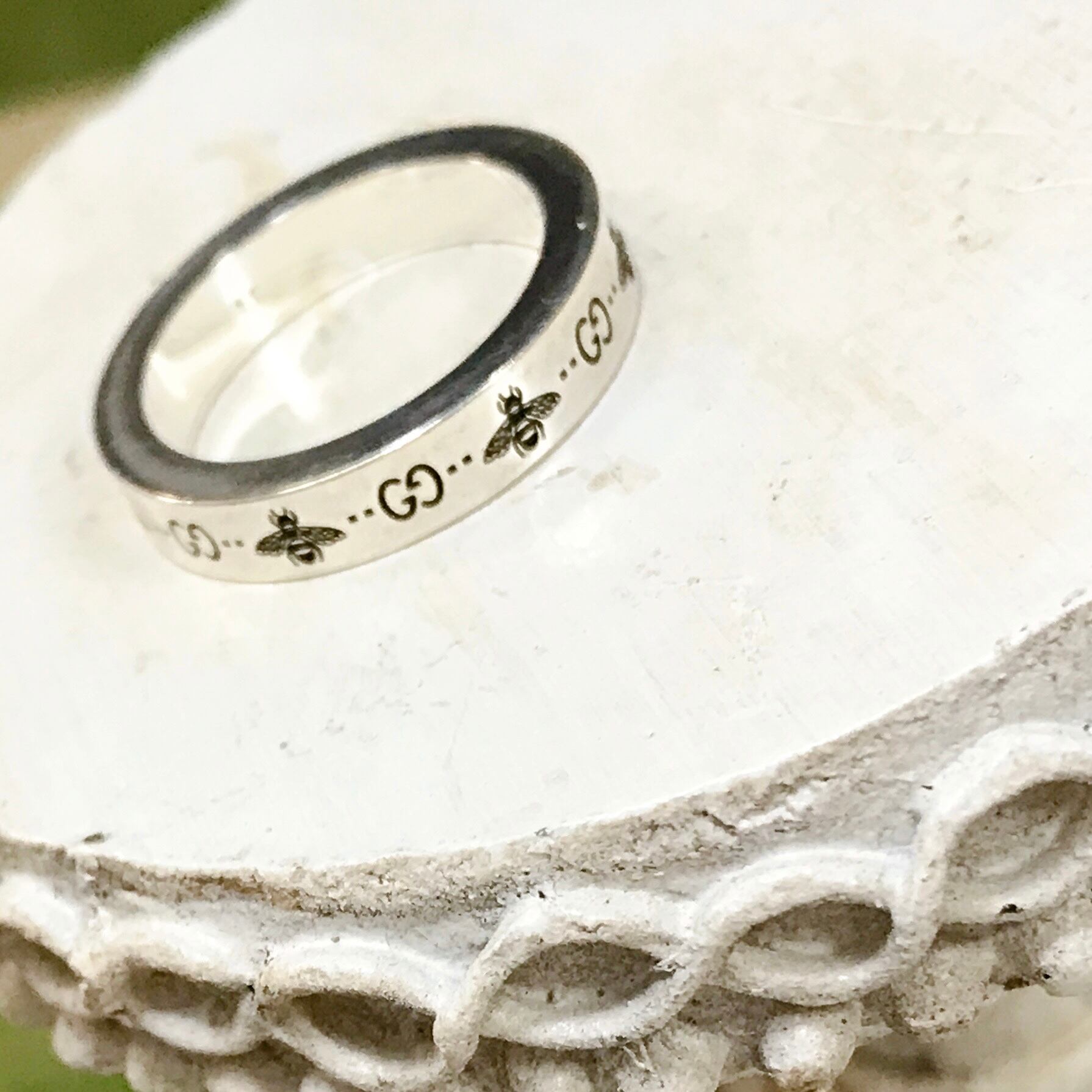 GUCCI シルバーリング ビー&GGロゴ