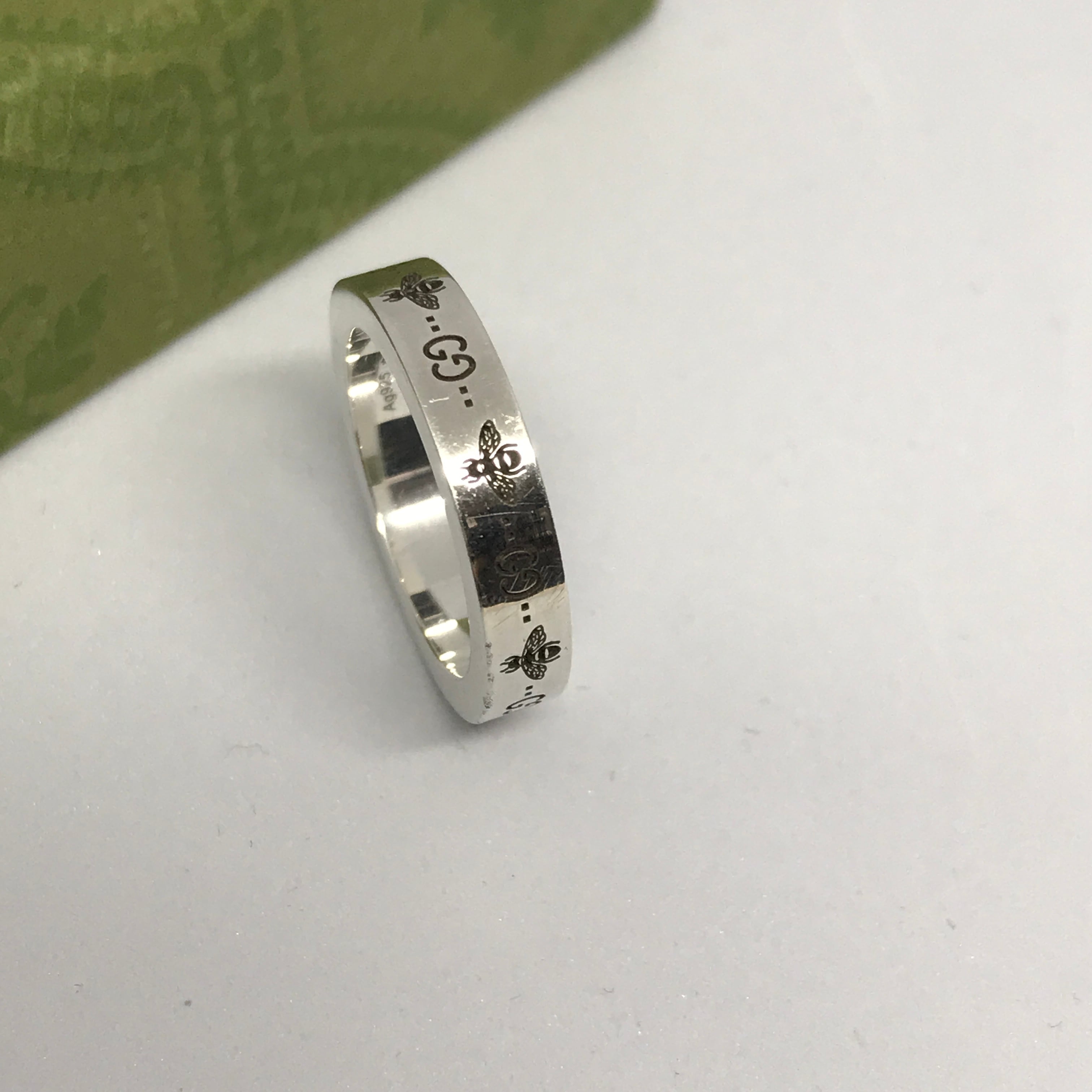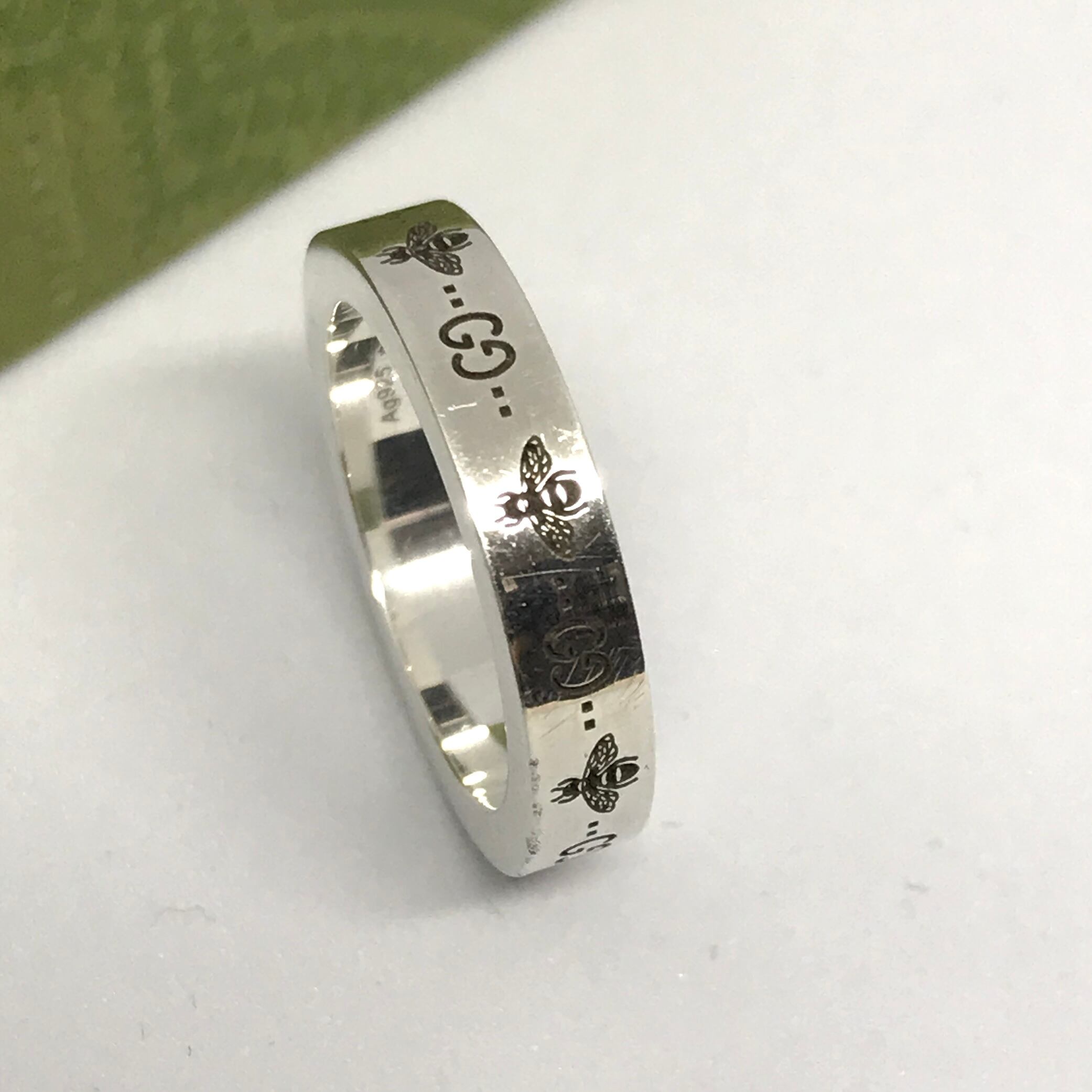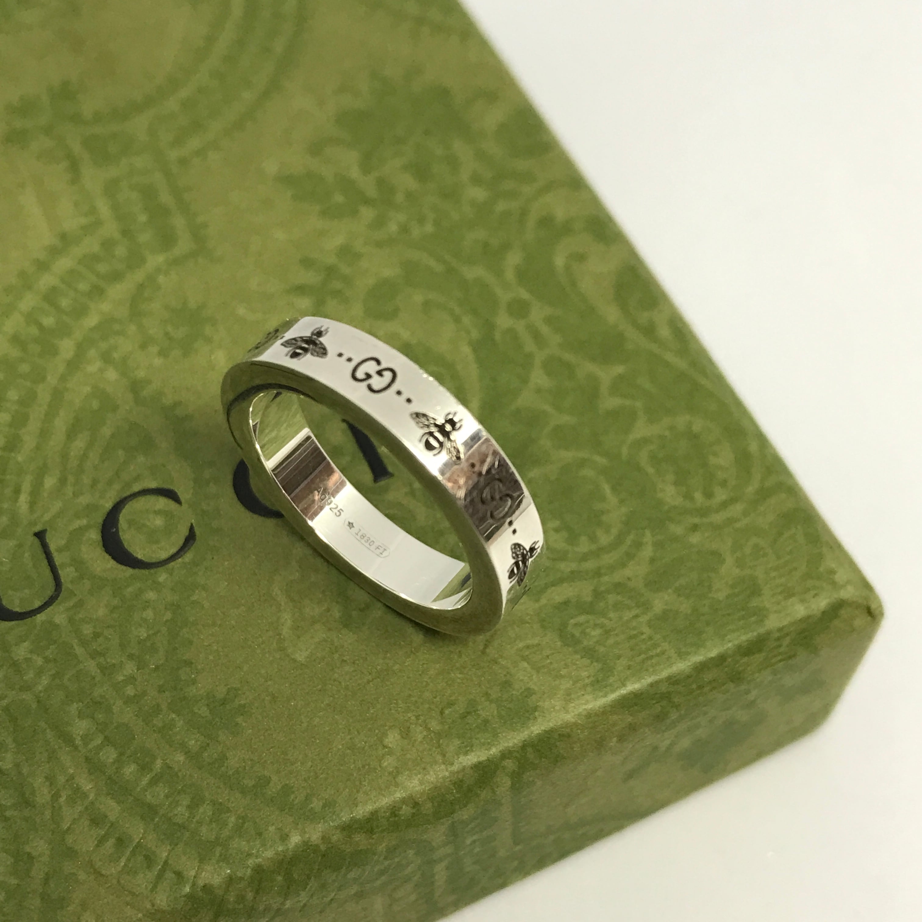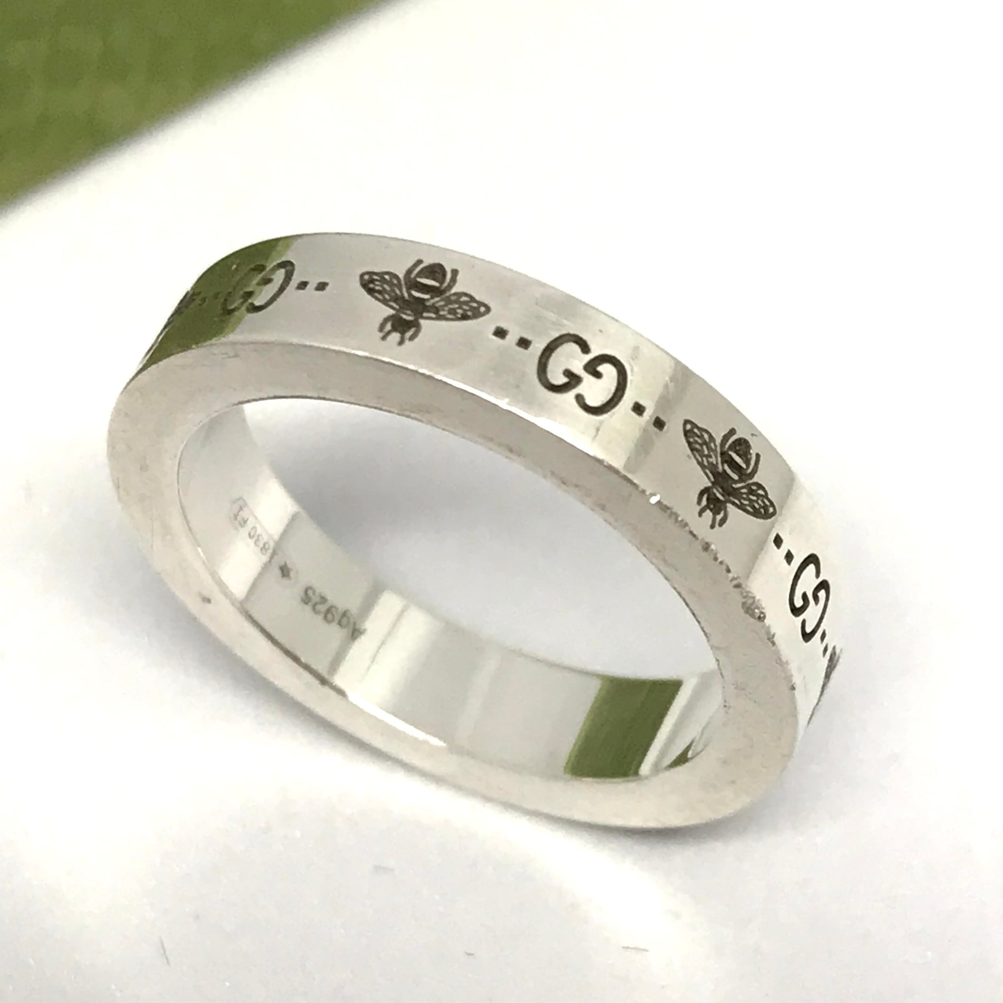 GUCCI シルバーリング ビー&GGロゴ